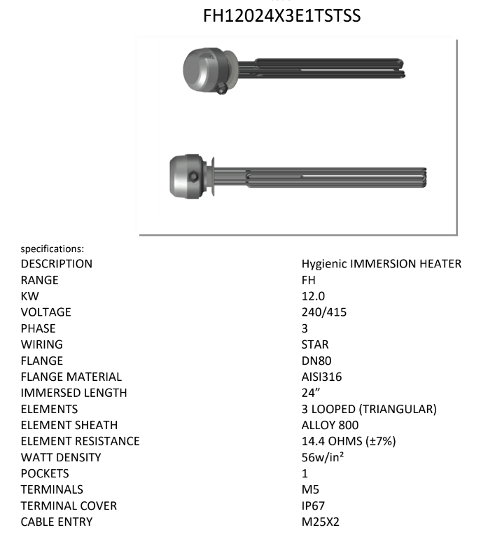 The “top hat” female tank ferrule allows the elements to be inserted directly & simply, with a high temperature gasket sitting between a similar “top hat” fixing on the heater.
