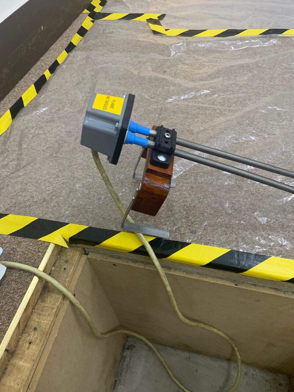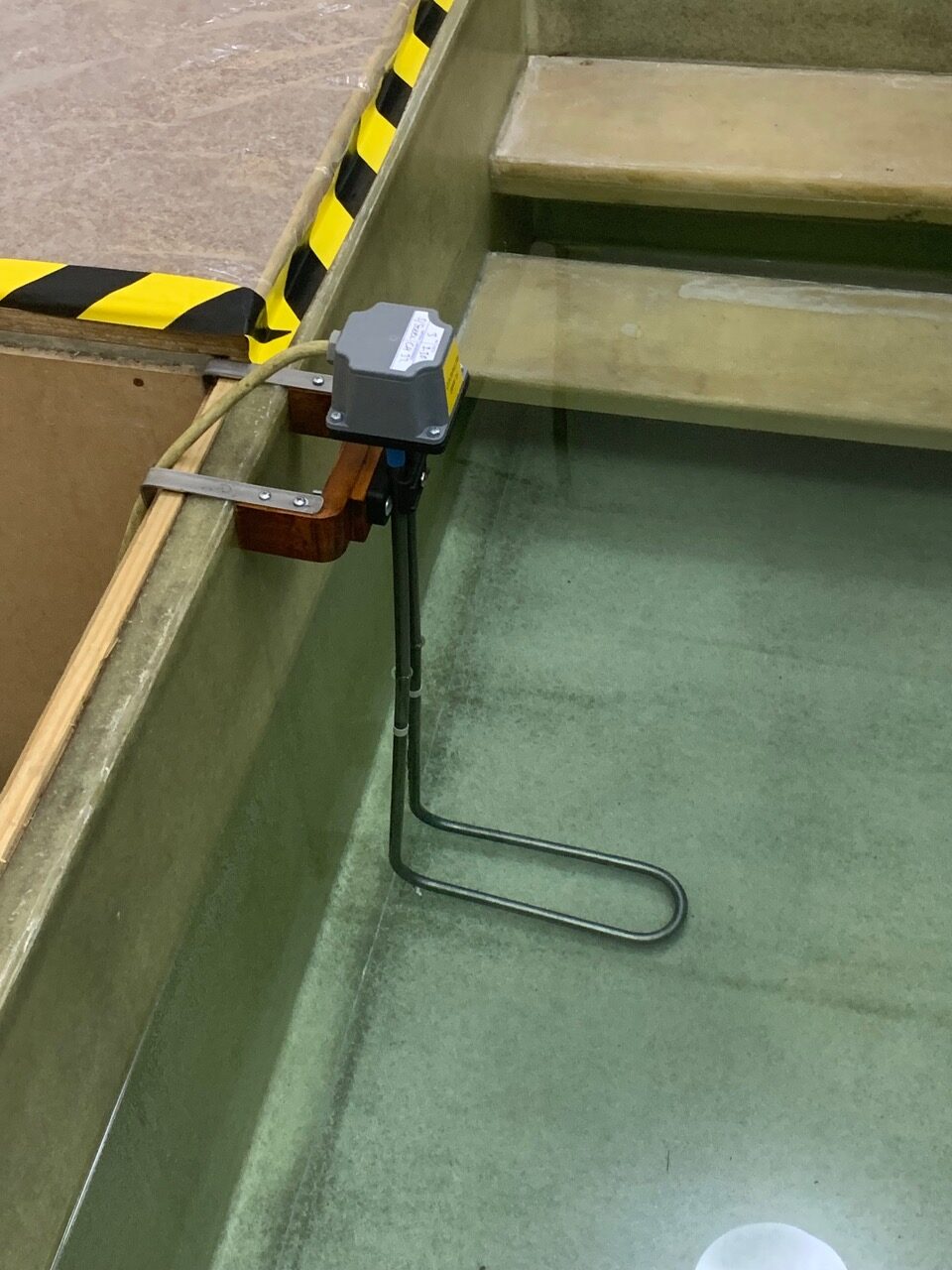 The downside to applying heat at the top of the vessel will become clear if your liquid level drops. If hot element is exposed to air, it rapidly becomes a fire hazard. And It will go BANG sooner rather than later. Thus, the default arrangement of 6″ on the horizontal (Y in the schematic above) gives you 12″ to play with, Matron! Therefore, we can lose the horizontal to give you 18″ of room for level drop. But the downside to this is that the terminal box must be suspended over the solution, both exposed to rising vapours and in danger of dropping into solution. Which will not end well, hence the recommendation at the top of the page.