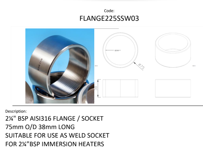 SS316 Weld Boss for 2.25″BSP immersion heater fitting (Part Code – WBSS2.25)